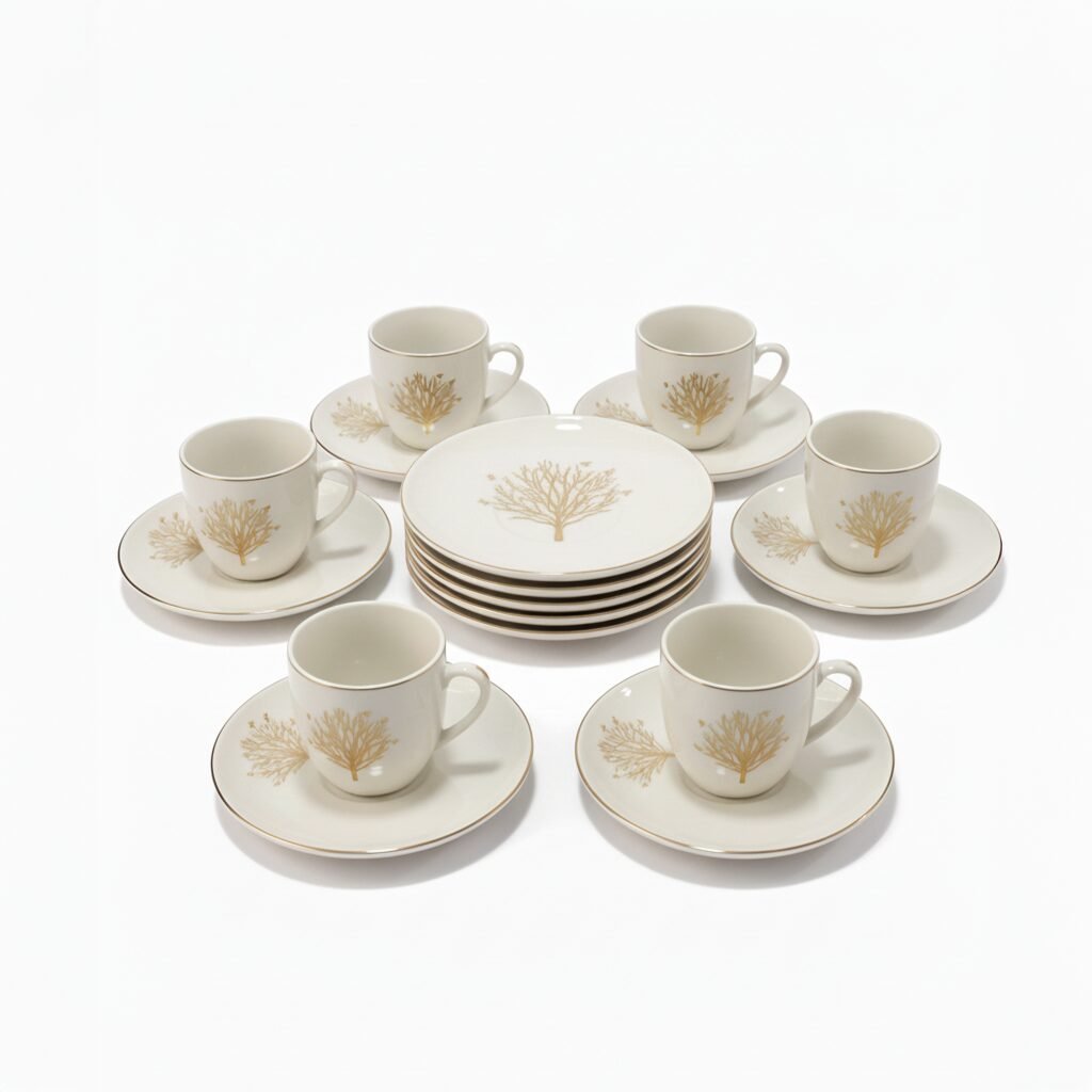 طقم فناجين ٦ قطع ابيض٠ وذهبي