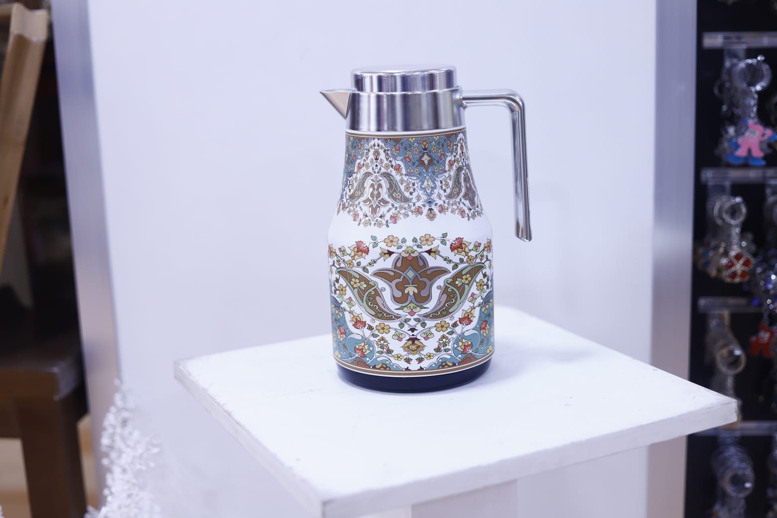 تيرموس حافظ للحرارة لون سلفر مزخرف بسعة 1 لتر