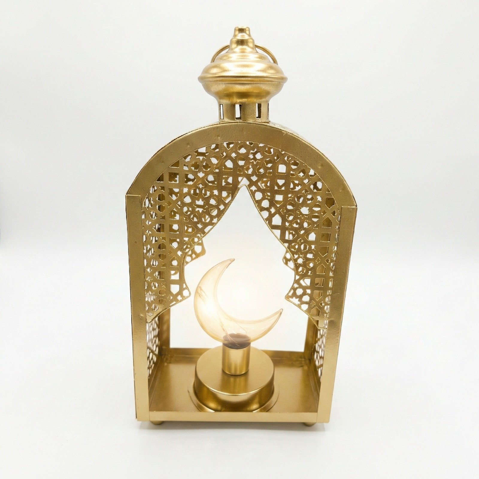فانوس رمضاني ذهبي مع انارة شكل الهلال – معدن