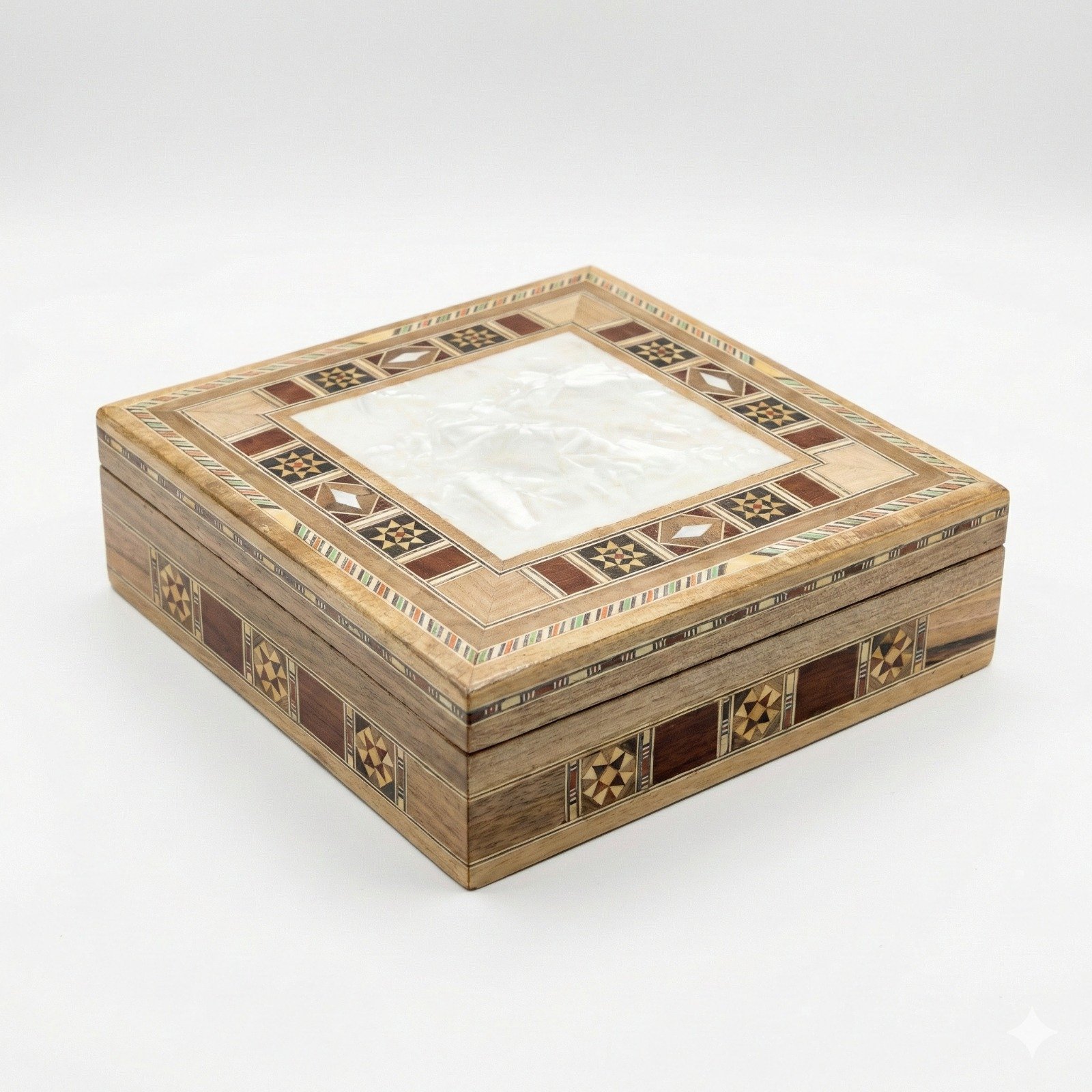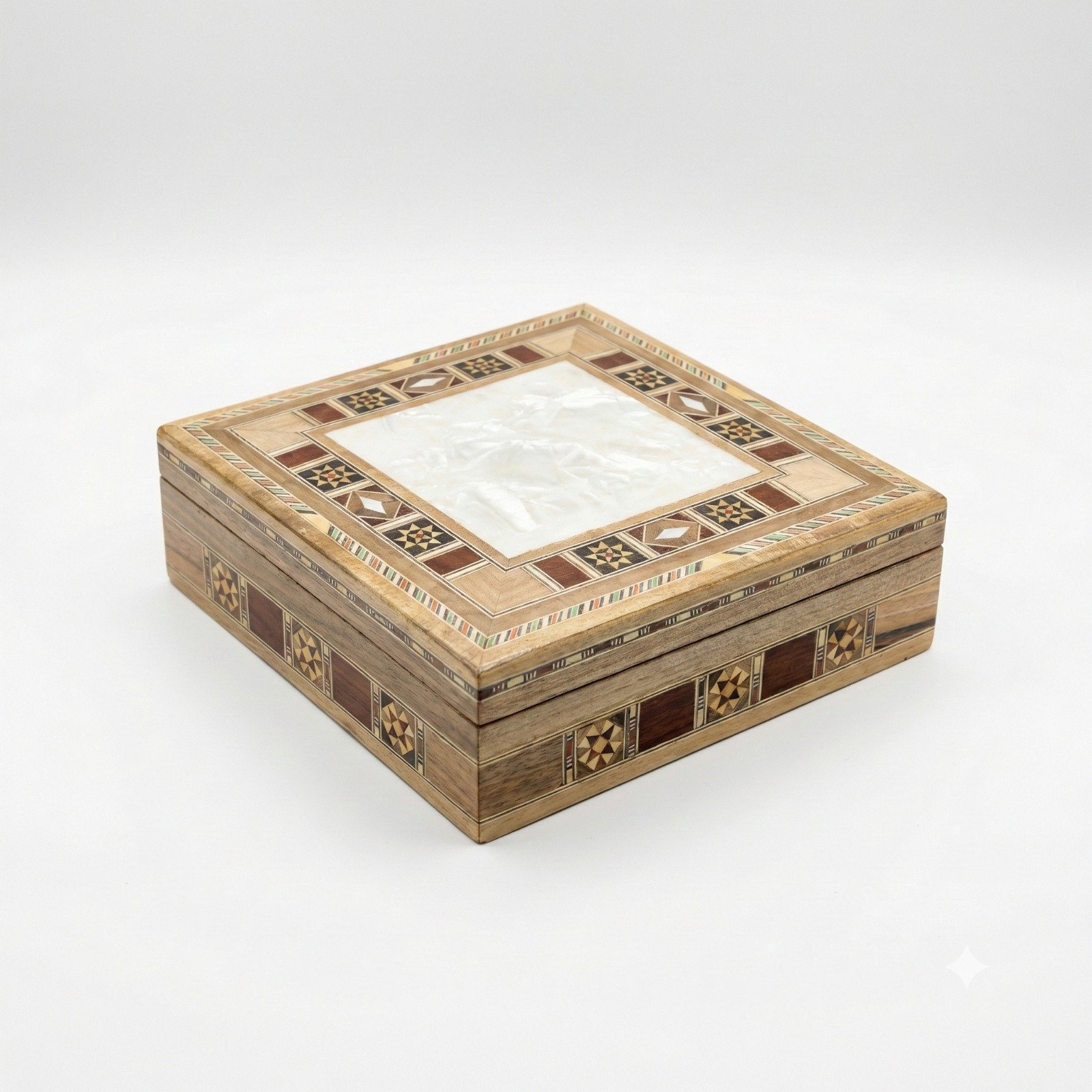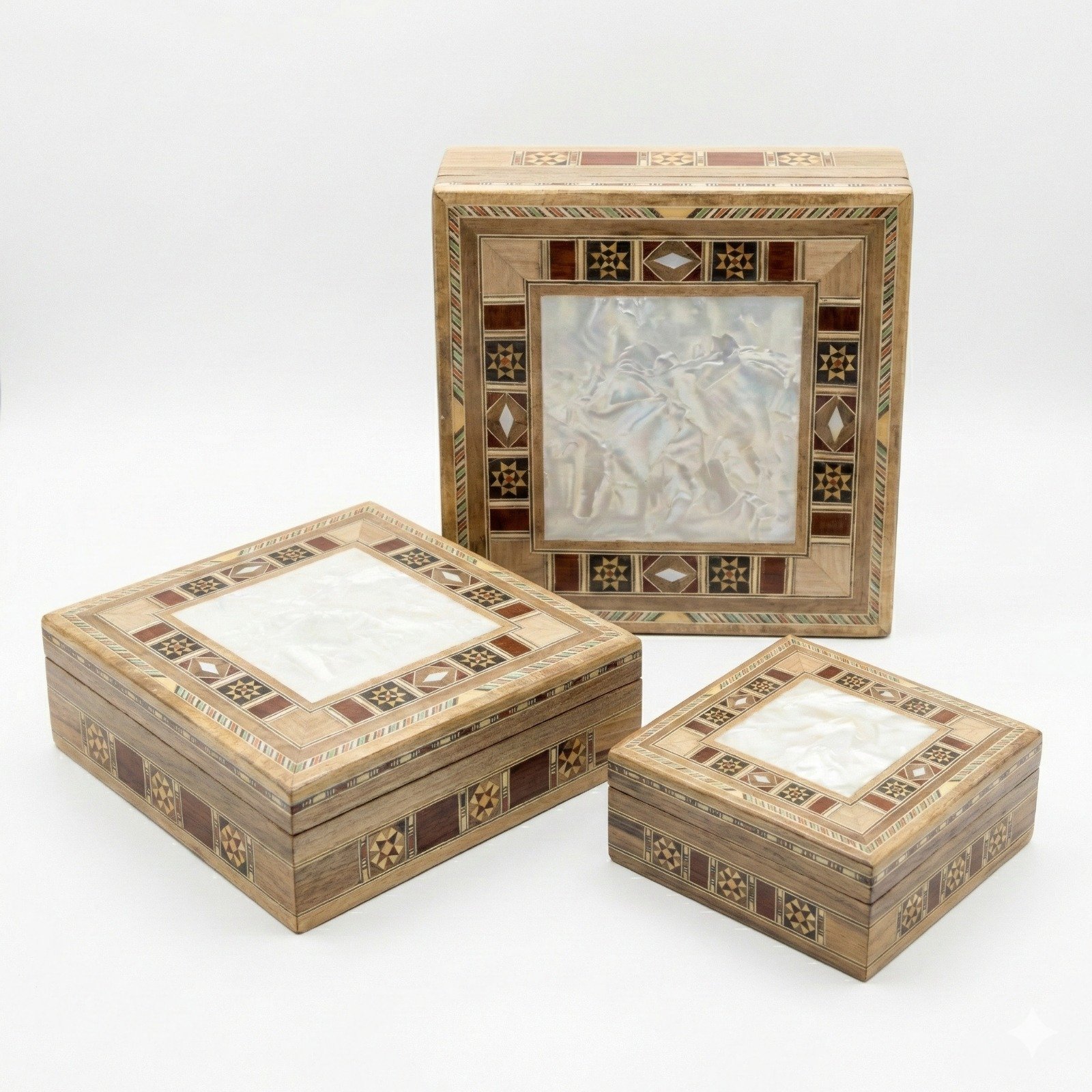 مختلفة صندوق موزيك خشبي مصدف ابيض بالشكل المربع ويتوفر بثلات احجام